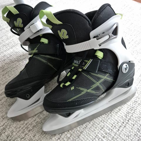 Hyväkuntoiset välille 29-34 säädettävät luistimet. Boan ansiosta helppo ja nopea laittaa jalkaan kovemmassakin pakkasessa.
