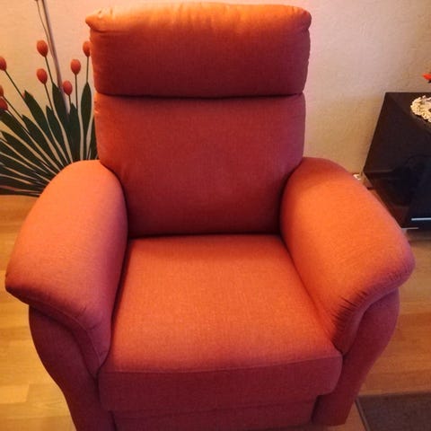 Myynnissä vaaleanpunainen Cosy nojatuoli. Tuoli on ajaton ja moderni. Nojatuolin runko ja jouset ovat ehjät. Istuin ja selkätyynyn kangas on irrotettavissa pesuun. Korkeat jalat mahdollistavat helpon puhtaanapidon tuolin alta. Huomioitavaa tuolin kunnossa: Nojatuoli on ollut koirataloudessa. Tästä johtuen istuin ja selkätyynyjen alla olevassa rungonkankaassa hieman koirankarvoja. Lisäksi kapeakäsinojaisten nojatuolien tyyppivika tästäkin löytyy. Käsinojan pehmuste painunut hieman sivullepäin. Runko ehjä. Tästä hieman väriä ja istuinmukavuutta varmasti joka eurolla. Nojatuolin hinta: 219e.