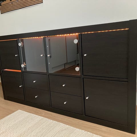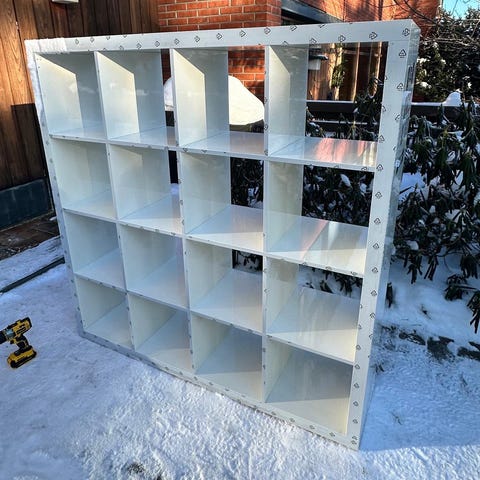 Hyväkuntoinen korkeakiiltoinen Ikea 2x4 Kallax hylly