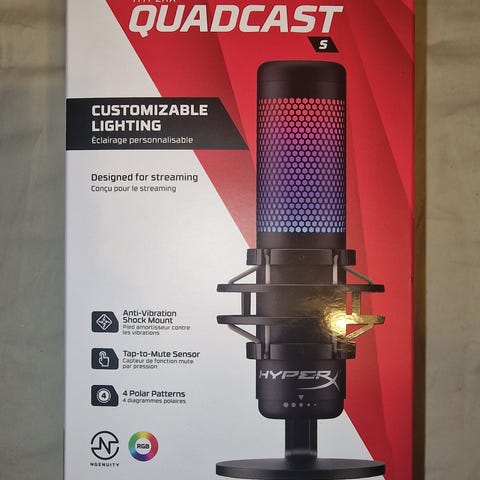 Myynnissä hyväkuntoinen HyperX QuadCast 2 -mikrofoni. Ollut omassa käytössä vain noin 2 viikkoa, jonka jälkeen seissyt kaapissa noin 3 kuukautta. Toimii moitteettomasti. Takuu löytyy Verkkokauppa.comista. Haku vain.