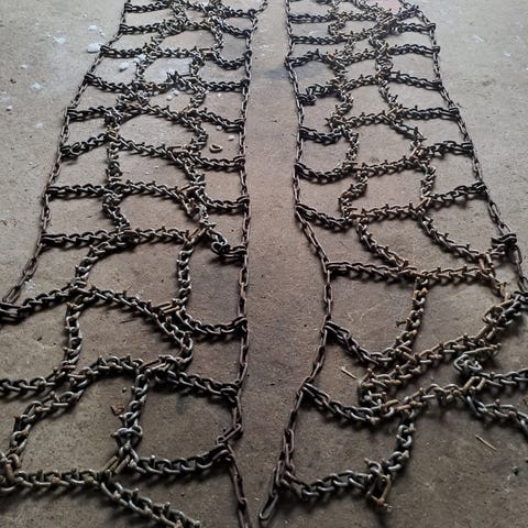 Myynnissä hyväkuntoiset traktorin nappula ketjut itsellä oli yhden talven 13.6-38 renkailla. 2kpl ketjuja myynnissä Trygg Norjalaista laatutyötä.