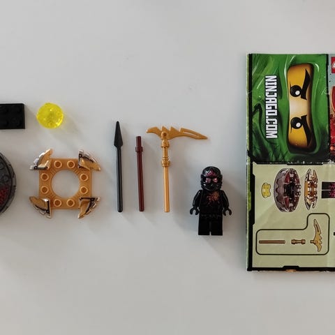 Myydään Lego Ninjago NRG Zane spinner. Kaikki osat löytyy. Ohjelappusta ei enää ole ja vain 3 korttia. Minifiguurin pää, huppu ja jalat ovat tosi hyvässä kunnossa. Torsossa on pieni halkeama takana, toisessa kädessä on halkeama ja toisessa kyljessä on pientä likaa. Kyljissä ei ole kuitenkaan halkeamia. Katso kuvat. Hinnasta voidaan neuvotella. Haku onnistuu tai postitus.