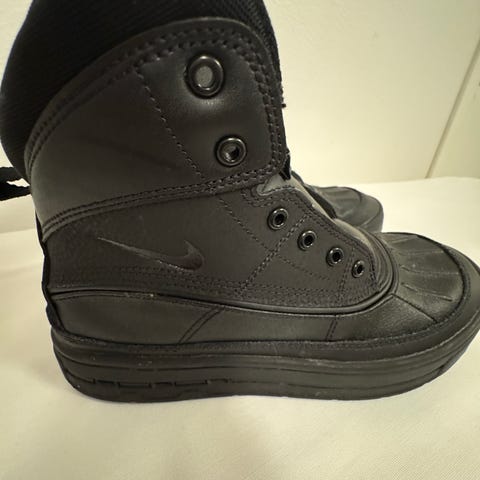 Nike lasten lenkkarit, koko 37. Unisex-malli. Väriltään tummat, joissa heijastavia yksityiskohtia päällisessä. Nauhakiinnitys ja paksu pohja, jossa näkyvät Air-tyynyosat kantapäässä. Soveltuvat arkikäyttöön ja liikuntaan.