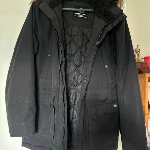 Dickies miesten talvitakki koossa L. Väri musta. Materiaalina polyesteri. Takissa on huppu, jossa on tekoturkisreunus. Sopii kylmään säähän ulkoiluun ja arkeen.