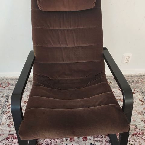 Musta nahka nojatuoli ja rahi.