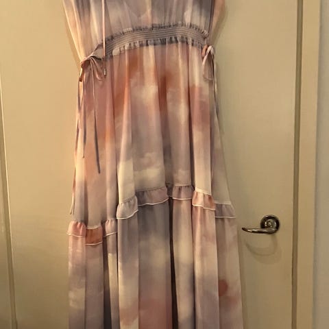 Valmistajan kokomerkintä: 42Olka - helma pituus n. 107 cmKainalo - kainalo mitta n. 51 cm70% asetaati, 30% viskoosiSäädetävä vyö