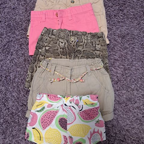 Tyttöjen shortsi paketti, koko 110/116cm . Materiaalina puuvilla. Setissä kolme erilaista shortsia: yksiväriset keltaiset shortsit, raidalliset shortsit sekä kirjavat kukka- ja lehtikuosiset shortsit. Sopivat arki- ja vapaa-ajan käyttöön lämpimiin säihin.