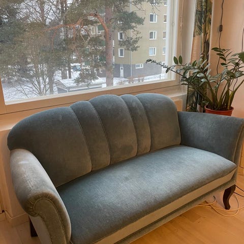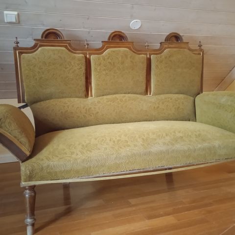 Tyylikäs biedermeier taittosohva, jossa on kauniit puurunko ja kukkakuvioinen verhoilu. Tämä sohva on erinomainen esimerkki 1800-luvun alun eurooppalaisesta muotoilusta, jossa yhdistyvät eleganssi ja käytännöllisyys.Biedermeier-tyyli on tunnettu yksinkertaisista linjoistaan ja mukavuudestaan, ja se oli suosittu erityisesti Itävallassa ja Saksassa. Tämä sohva edustaa tyylisuuntaa, joka korostaa kodikkuutta ja käytännöllisyyttä, ja se on säilyttänyt viehätyksensä vuosikymmenten ajan.Sohvassa on näkyvissä kulumaa ja verhoilussa on joitakin haalistumia, mutta se on edelleen tukevassa kunnossa. Puurungossa on pieniä naarmuja, mutta ne eivät vaikuta rakenteelliseen eheyteen.