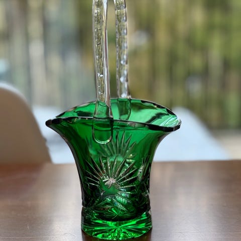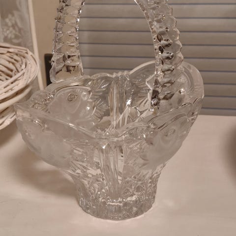 Hakusanat: 1900-luku, kirkas lasi, lasiesine, vintage huonekalut, kristallikori, vintage, sisustus, käsityö, koristeellinen, leikkaus, koriste-esine, Paketoitava