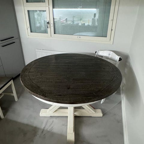 Pöytä on hyvässä kunnossa ilman näkyviä vaurioita.