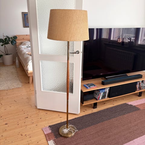 Hakusanat: ajaton, design, teak 60-luku, puu, vintage, retro, valaisin, sisustus, messinki, varjostin, muotoilu, klassikko, koristeellinen, lattiavalaisin, valaistus, design huonekalut, vintage huonekalut
