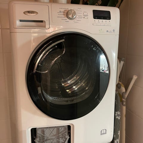 Kuvan mukainen whirlpool kuivausrumpu. Kuivuri on ollut tähän saakka käytössä, mutta kuivaa erittäin huonosti / pitkällä ajalla. Todennäköisesti vaatii perusteellisen puhdistuksen (joka vaatii koneen avauksen) sillä itse tekniikka tuntuu toimivan.