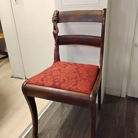 Hyvin siisti kunto. Istuimen verhoilu vaihdettu mustaan samettiseen kankaaseen sekä pehmustetta lisätty.
