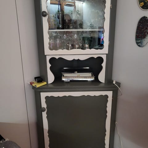 Myydään kuvan kulmakaappi. Korkeus 175cm. Leveys 70cm ja syvyys 40cm. En varaa 2h pidemmäksi aikaa