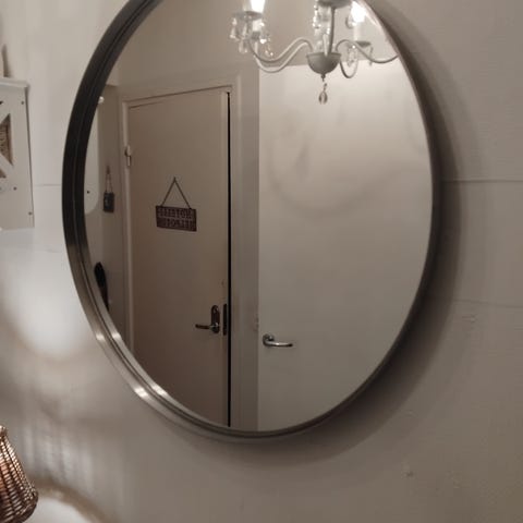 Isku 707 peili, koko 40 x 80 cm. Peilissä on ruskea puukehys, jossa on porrastettu reunamuotoilu. Taustalevyssä on kiinnityskohdat seinälle ripustamista varten. Sopii käytettäväksi esimerkiksi eteisessä, makuuhuoneessa tai muussa sisätilassa seinäpeilinä.