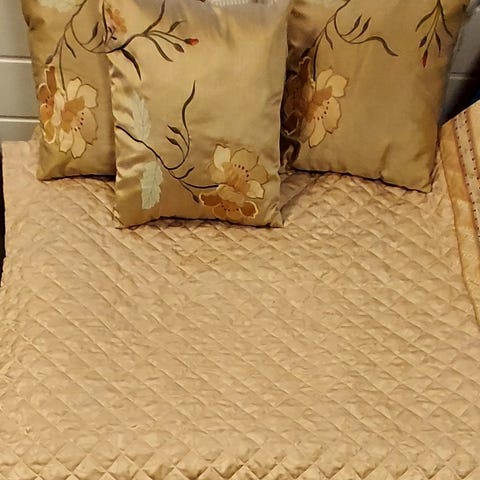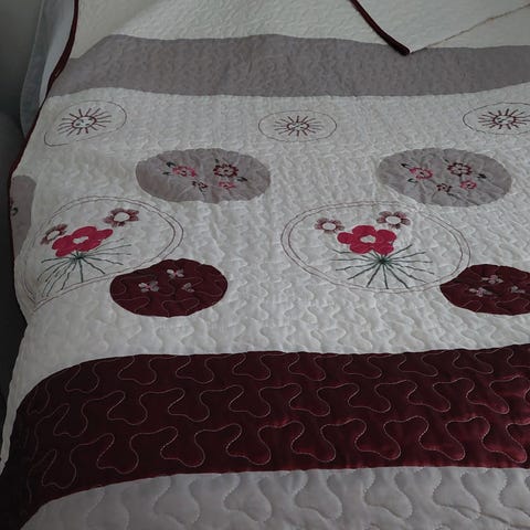 Lexington päiväpeite. Väri on punainen ja päällinen on pehmeää puuvillaa, jossa on tikattu timanttikuviointi. Sopii käytettäväksi sängyn päällä päiväpeitteenä tai lisäpeittona. Merkkilapun mukaan materiaali on 100 % puuvillaa.