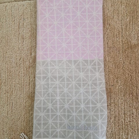 Oranssi/punainen. Marja Kurjen villahuivi. Lähes uuden veroinen. Pituus 182cm + hapsut. Leveys 31cm.. Unisex. kulkeutuu postissa pikkupaketissa 5e