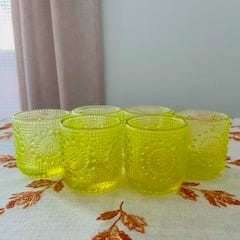 Riihimäen Lasi Nanny Still suunnittelema Grapponia sarjan kauniita keltaisia lasilautasia 2kpl (14.5cm). Ehjät ja hyväkuntoiset. Yhteishint 20e