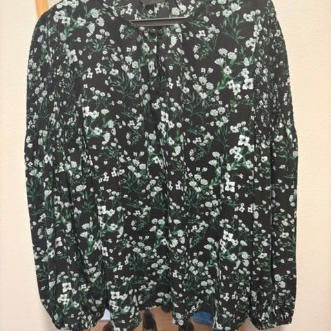 Pusero h&m koko L., materiaali liukaspintainen, hihat leveät hihansuissa suossa kuminauha. Saa myös overzise malliksi mutta nauhalla kiinni myös normaali kaula aukoksi. Menee mallin ansiosta myös xl koolle. Nouto roihuvuoresta tai postitus