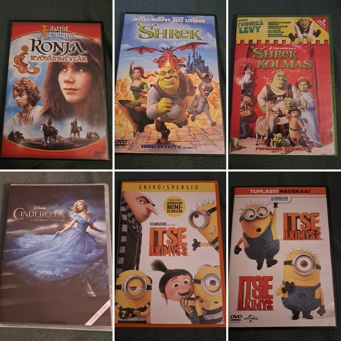Uusia avaamattomia dvd elokuvia Yösyöttö, Shrek kolmas, Shrek the Third, Avatar