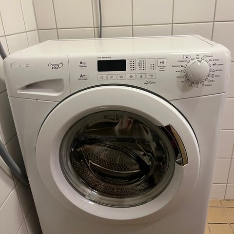 Candy kuivaava pesukone etuluukulla. Mitat: leveys 60cm, syvyys 45cm, korkeus 80cm. Ohjauspaneelissa on ohjelmavalitsin ja painikkeet lisäasetuksille. Kuivaustoiminto mahdollistaa pyykin pesun ja kuivaamisen samassa koneessa. Soveltuu pienen tilan. Kone toimii hyvin ja on nyt tarpeetonta.