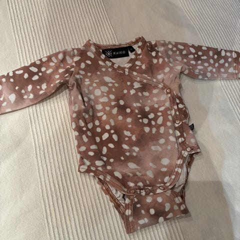 Kaikon Blue blossom kukkabody koko 62/68cm. Kietaisubody helpottaa pukemista. Käännettävät hihansuut, joten ei tarvita erillisiä tumppuja raapimisen estoon.