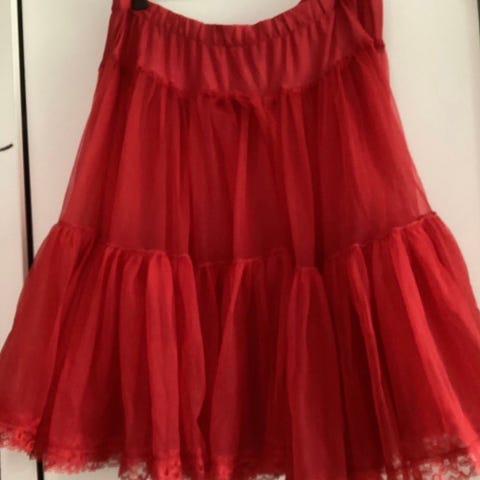 Sifonki alushame, nostaa helmaa hyvin. Sopii esim kellohameen alle. Vyötärö joka joustaa 80cm. Pituus 60 cm.