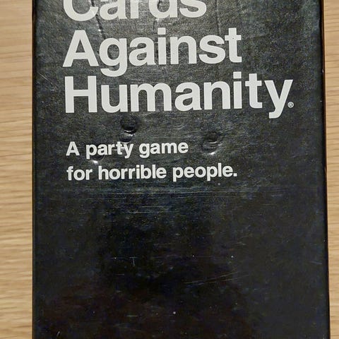 Avaamaton Cards Against Humanity -lautapeli. Saanut joskus lahjaksi.