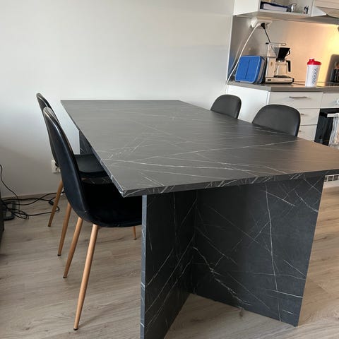 Ruokapöytä KRONDAL 90x180 musta marmorijäljitelmä+ 4 tuolia mitä kuvassa näky. Vaan nouoto.