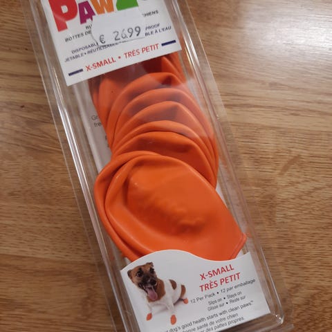 Käyttämättä jääneet koirille tarkoitetut tossut/kengät/suojat. Helppo pukea päälle ja kiristys myös erittäin helppoa. Ei sisällä paksua vuorta.