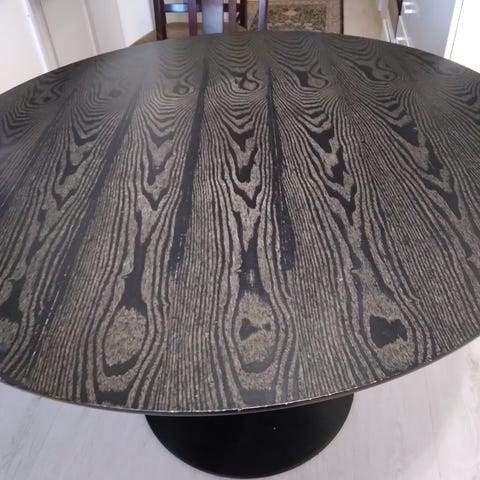 Pyöreä pöytä. Aukeaa keskeltä joten helppo kuljettaa.