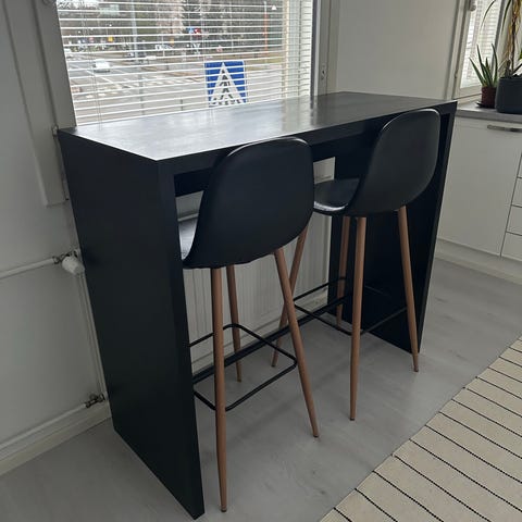 Musta baaripöytä, ei tietoa mistä ostettu, mutta tori ei anna vaihtaa ikea merkkiä pois😁 vain haku Villähde.