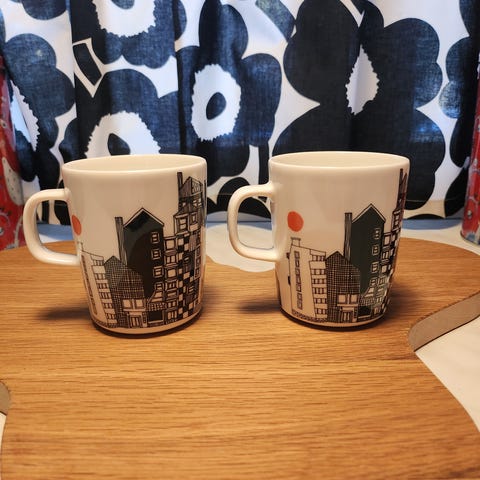 Myydään Marimekon Oiva Siirtolapuutarha muki, vetoisuus 2,5 dl. Hyvä ja siisti kunto, ei värjäytymiä, naarmuja tms.