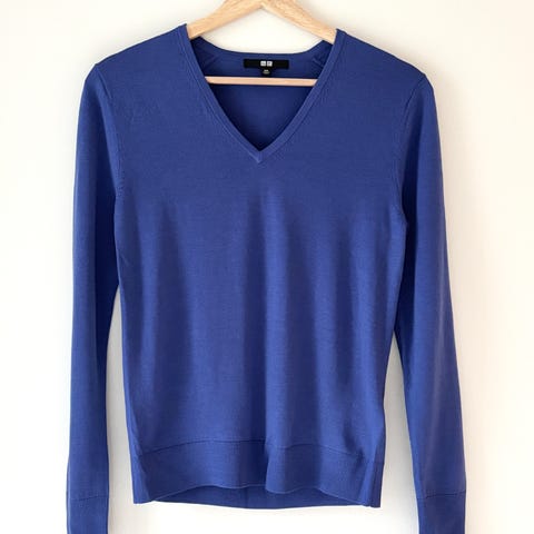 Koko M, kain-kain n.53 cm ja Olka-helma n. 57 cm. Käyttämätön. Harmaa-sininen. 100 % villaa.