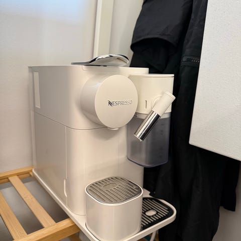 Nespresso espressokone, jossa kaksi erillistä kahvipäätä.