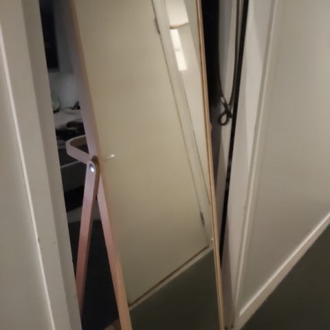 IKEA kokovartalopeili. Vapaa sti seisova peili, joka soveltuu esimerkiksi makuuhuoneeseen, eteiseen tai pukeutumistilaan. Kapea ja korkea malli, jossa tukeva jalusta takana. Peili heijastaa koko vartalon ja auttaa pukeutumisessa ja asujen tarkistamisessa.