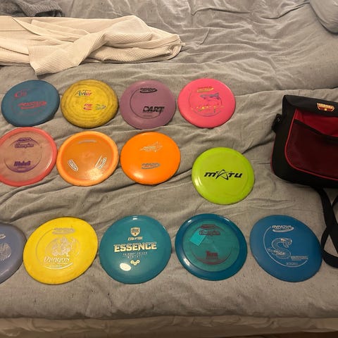 Sekalainen setti erilaisia kiekkoja + hyväkuntoinen bägi!