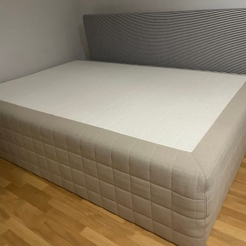 IKEA Skårer sänky/runkopatjat harmaalla verhoilulla. Sängyn leveys 80cm+80cm. Runkopatjat ovat 3vuotta vanhat ja olleet satunnaisessa airbnb käytössä. Jotain pieniä tahroja voi olla, mutta pääosin oikein siistit ja käyttökelpoiset.