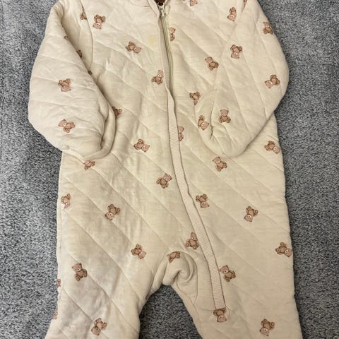 Myydään ihana ja pehmeästä veluurista valmistettu Newbien vauvan haalari. Haalarissa taitettavat suojat käsille ja jaloille, jotka pitävät pienen lämpimänä.