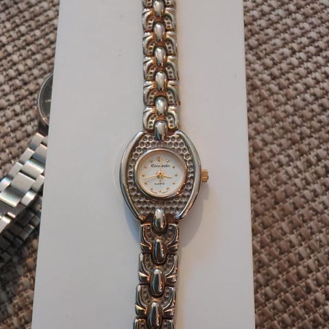 Kaunis naisten rannekello 80-luvun alusta. Vedettävä ja nyt jokin vieteri löystynyt, joten vaatii korjauksen. Muuten ehjä.