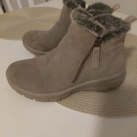 Myydään talvinilkkurit. Varsi taipuisaa kangasta. Jalkaosa mokkajäljitelmää tms. ja sisällä pehmeä vuori.