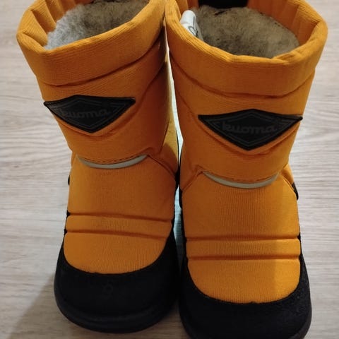 Annetaan punaiset Kuomat, koko 20. Kunto muuten erittäin hyvä, mutta mustat muoviosat alkaneet halkeilemaan. Ei siis kävelykäyttöön enää, mutta jos jollain tarvetta lämpimille kengille esim. vaunuihin, niin saa tulla ilmaiseksi hakemaan.