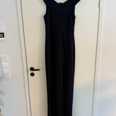 Naisten iltapuku koossa XS. Hankittu vanhojentasseja varten. Mekko on pitkä, sininen, ja siinö on kiiltävä pinta ja laskostettu helma. Käytetty vannehameen kanssa. Yläosassa koristeellisia pitsi- ja helmiyksityiskohtia. Mekossa on olkaimet ja nyöritys takana istuvuuden säätämistä varten.