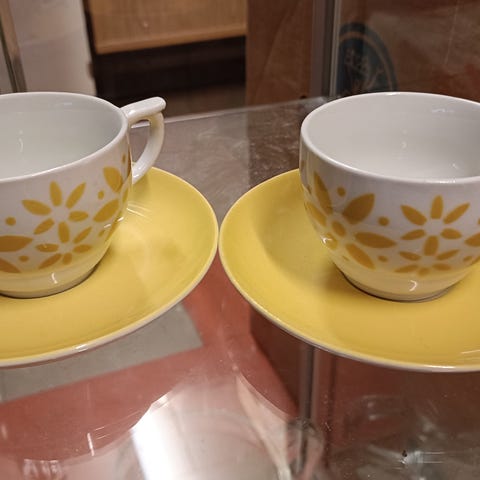 Arabia Armi-sarjan kahvikupit ja asetit sinivalkoinen kukkakuvio. Settiin kuuluu 11 kahvikuppia ja niihin sopivat asetit. Lisäksi 3 paritonta asettia. Kupit ja lautaset ovat valkoista posliinia, jossa on sininen kukkakuviointi ja yksivärinen sininen aluslautanen. Kaikki astiat ovat ehjiä ja muutenkin hyväkuntoisia.
