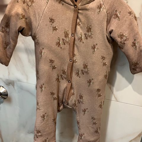 Lil’Atelier vauvan toppahaalari, koko 62/68. Väri vaalea roosa. Edessä pitkät vetoketjut helpottamassa pukemista. Soveltuu vauvalle ulkoiluun viileämmällä säällä.