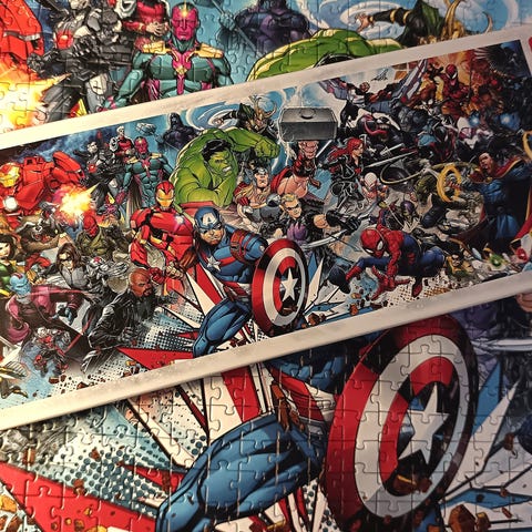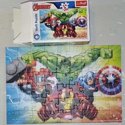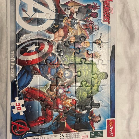 Kerran koottu palapeli, yksi pala puuttuu reunasta, kuten kuvasta näkyy. Muutama palan olen korjaillut, mutta ei vaikuta kokoamiseen.