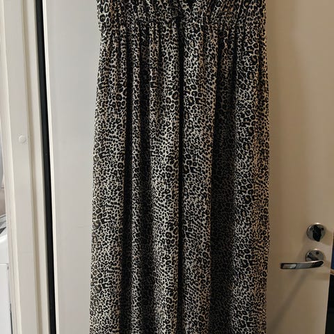Myydään tummanvihreä mekko jossa leopardikuvioitu kangas. Korostettu olkapäät. Rinnan kohdalla kivasti muotoonommeltu.