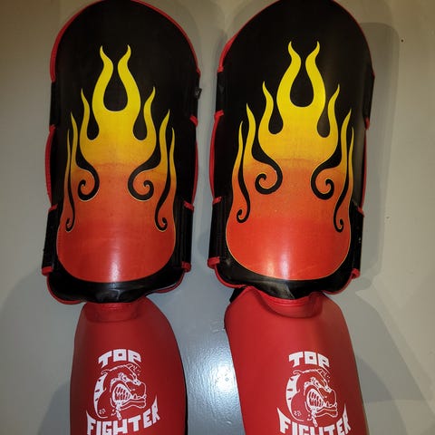 Fairtex säärisuojat kamppailulajeihin, koko M. Väri musta kuviollisilla yksityiskohdilla. Säärisuojissa on jalkapöydän suoja ja tarrakiinnitys säären takaosassa. Sopivat unisex-käyttöön erilaisiin kamppailulajeihin, kuten potkunyrkkeilyyn ja muihin potkulajeihin, joissa tarvitaan säärien ja jalkapöydän suojaa. Käyttämättömät, ostettu 2018.