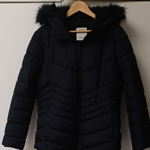 lämmin untuvatakki pieni vekki edessä mutta ei edes huomaa jos ei tarkkaan katso.