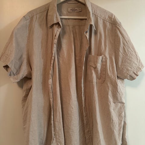 Hyväkuntoinen Dressmannin miesten harmaa kauluspaita, 100% pellavaa.